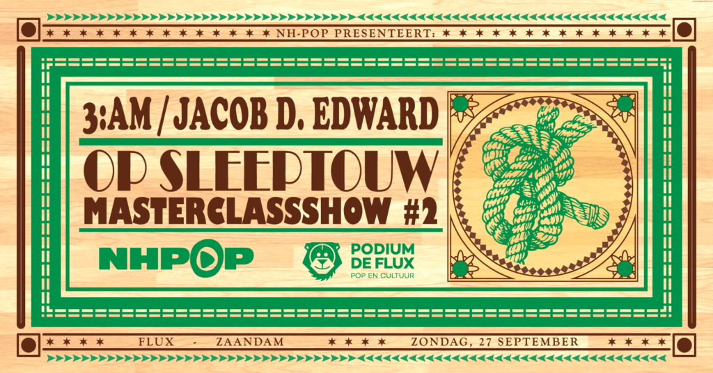 – Zondag 27 september in poppodium Flux in Zaandam met 3:AM en Jacob. D. Edward
